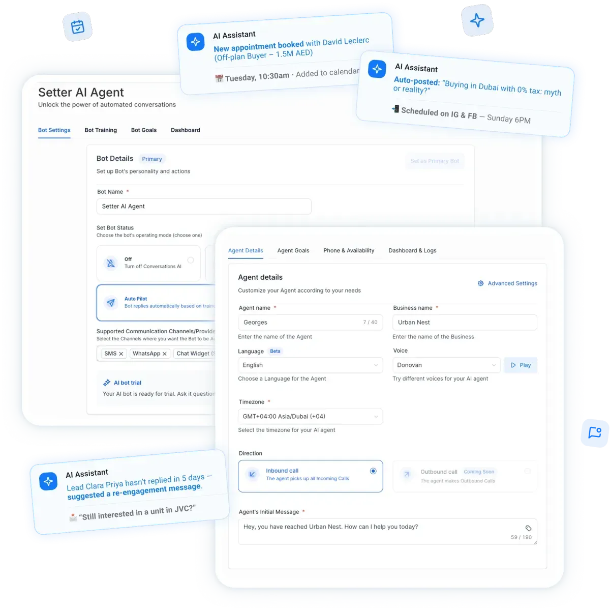 Built-in booking, follow-up, and lead tracking