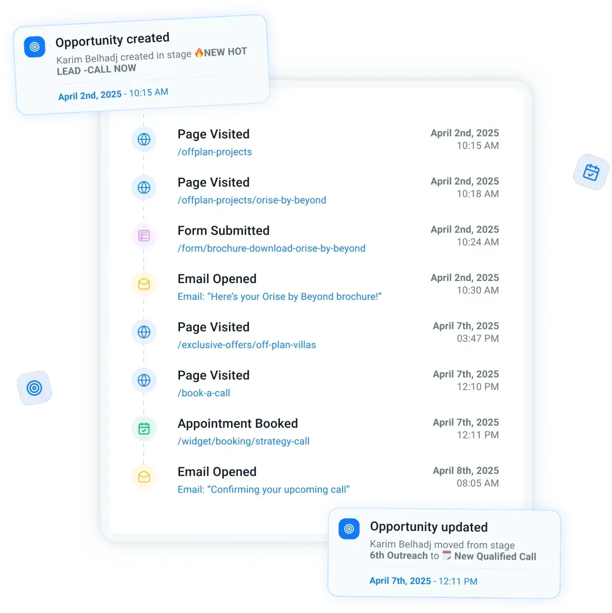 Text, email, and voicemail drops — sent automatically, based on your lead’s behavior. This means faster replies, higher show-up rates, and more conversions.